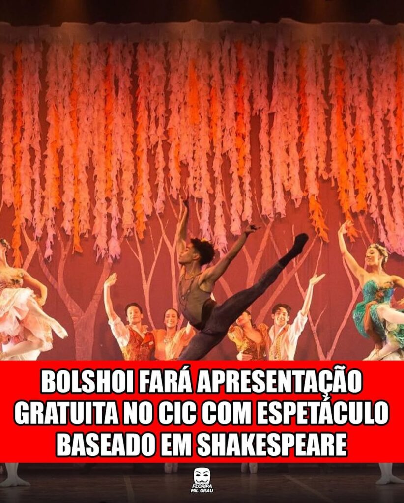 O Teatro Bolshoi desembarca em Floripa com o clássico “Sonho de uma Noite de Verão”, de William Shakespeare, coreografado por William Almeida. A apresentação é única, e vai rolar nesta quinta-feira (4), às 19h30, no Teatro Ademir Rosa (CIC).