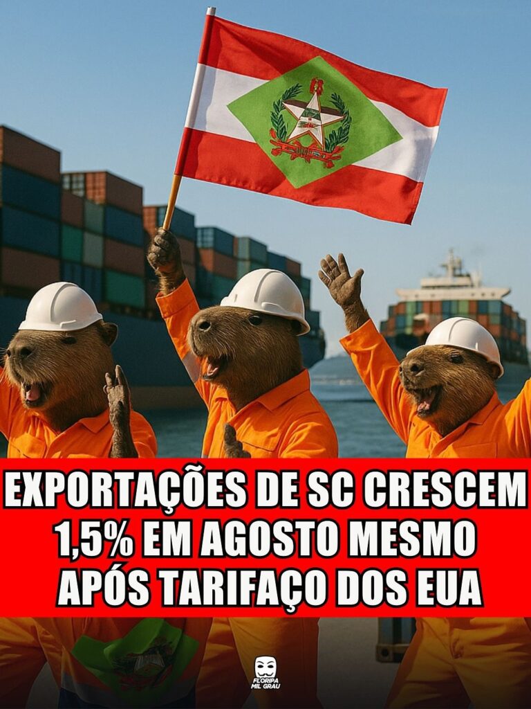 As exportações de SC subiram 1,5% em agosto, passando de US$ 956,7 milhões em 2024 para US$ 971,4 milhões neste ano.