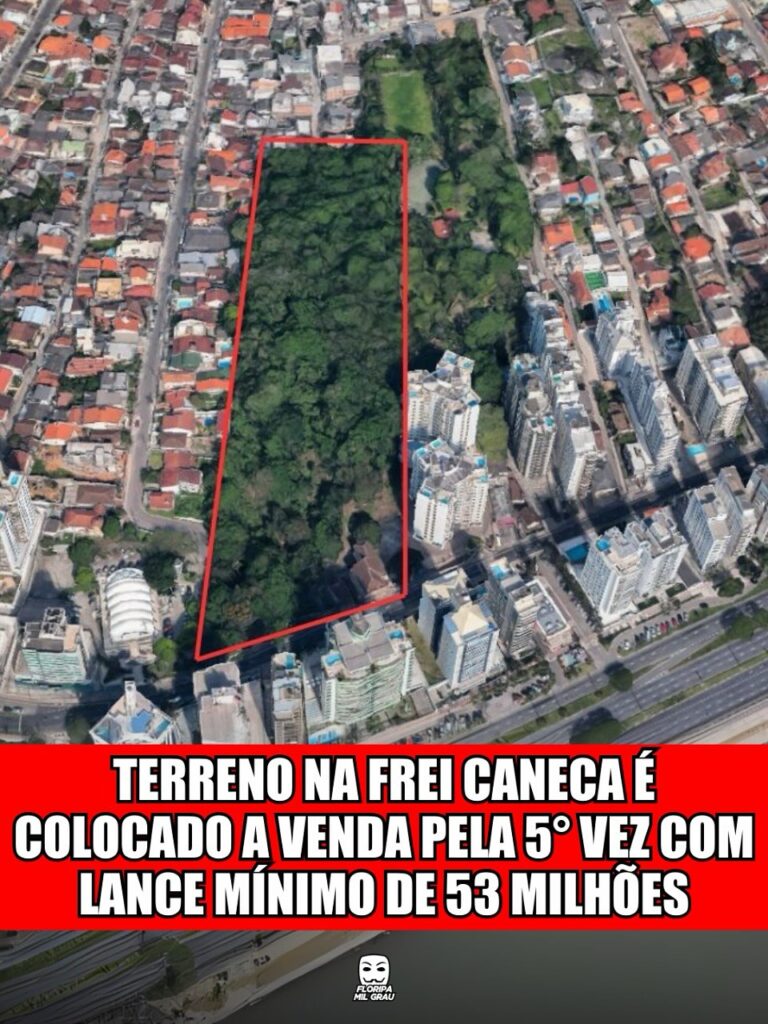 Um terreno nobre de Floripa, com 23,2 mil m² e um casarão histórico, vai a leilão pela quinta vez no dia 26 de setembro. O lance mínimo é de R$ 53,75 milhões.