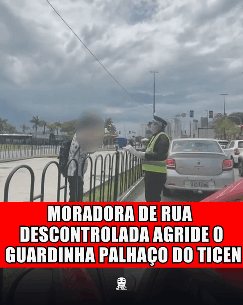 Hoje (28), quem passava em frente ao TICEN presenciou uma cena lamentável em que uma moradora de rua descontrolada agrediu o guardinha palhaço que fica no semáforo divertindo quem passa pelo local.