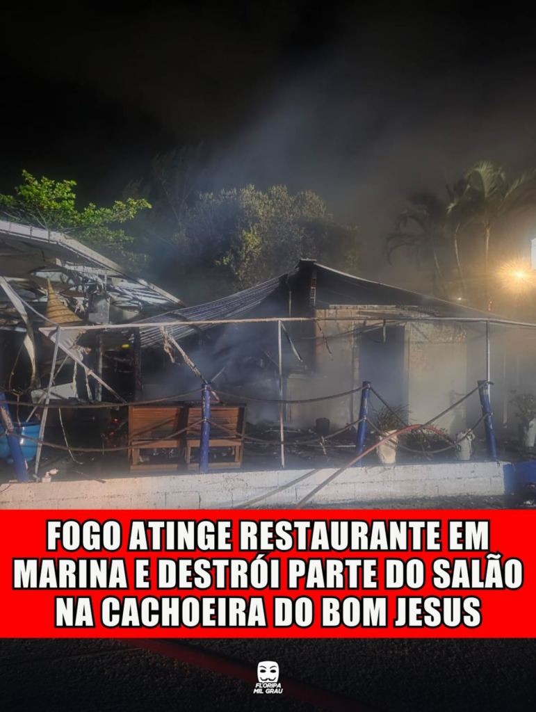 Um incêndio atingiu o Santo Lua Restobar, um restaurante localizado dentro de uma marina na Rua das Buganvílias, na Cachoeira do Bom Jesus, em Floripa, na noite desta terça, 9.