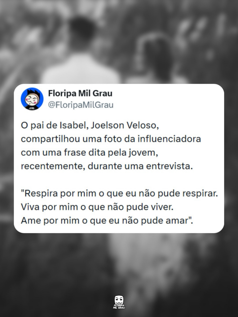 A influenciadora Isabel Veloso (@isabelvelosoo) morreu neste sábado (10), em Curitiba (PR), aos 19 anos. Natural de Dois Vizinhos, no oeste do Paraná, ela lutava contra um linfoma de Hodgkin desde os 15 anos e ficou conhecida por compartilhar a rotina de tratamento nas redes sociais.