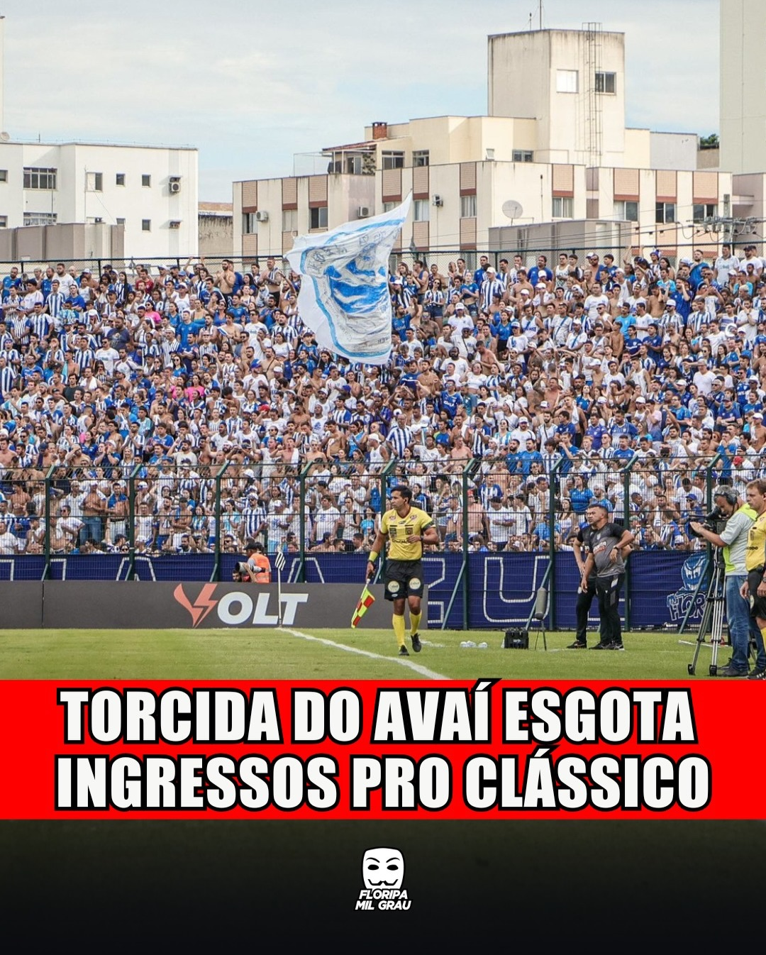 A torcida do Avaí foi ligeirassa! Os ingressos de visitante do Leão pro clássico contra o Figueira já esgotaram em Floripa. O jogo rola neste domingo (18), às 18h, no Scarpelli.