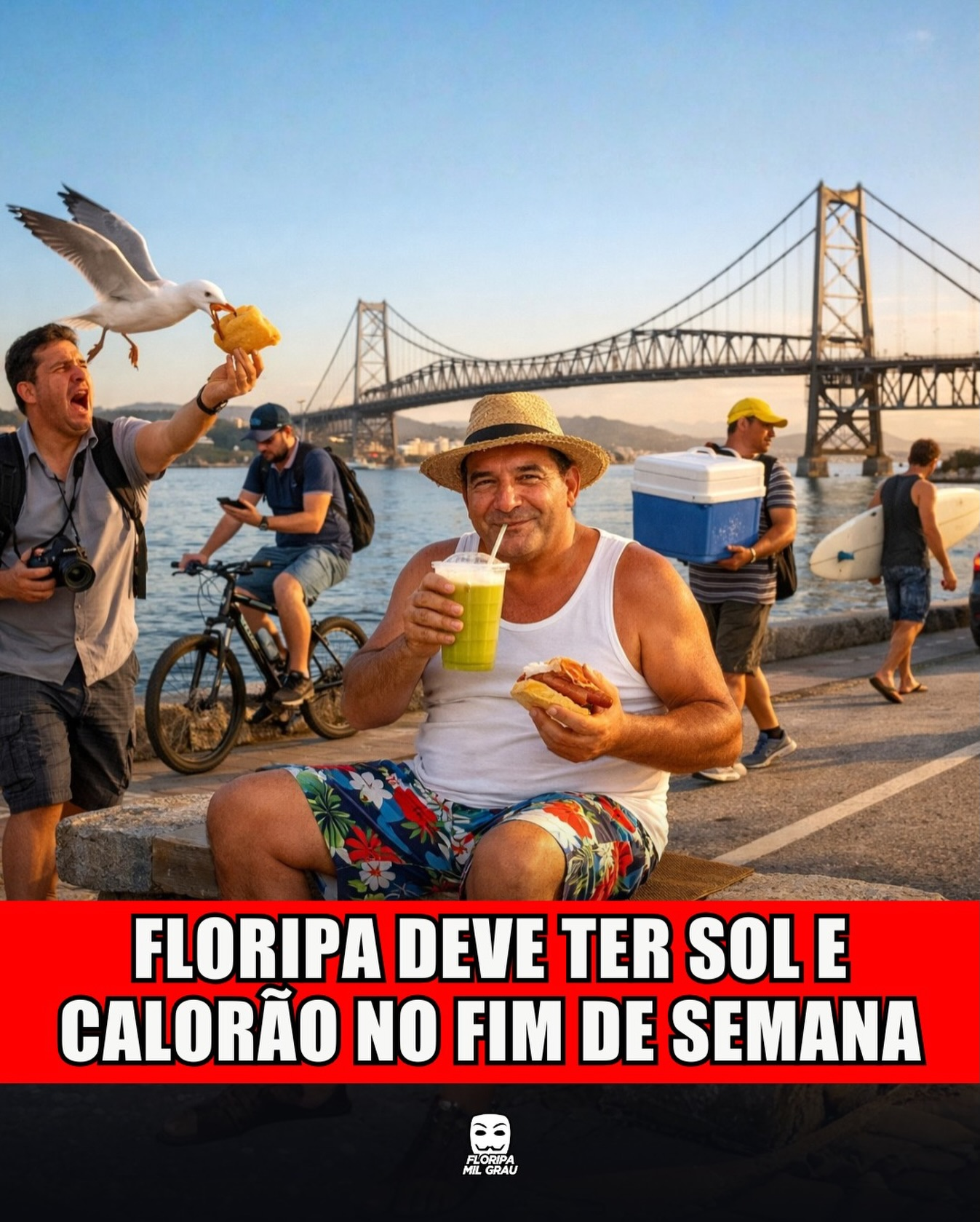 No sábado (24) e domingo (25), o padrão continua em Floripa e região. Sol entre nuvens, manhã tranquila e calorzinho à tarde. A chance de chuva é baixa e, quando acontece, é fraca e isolada, mais no fim do dia.