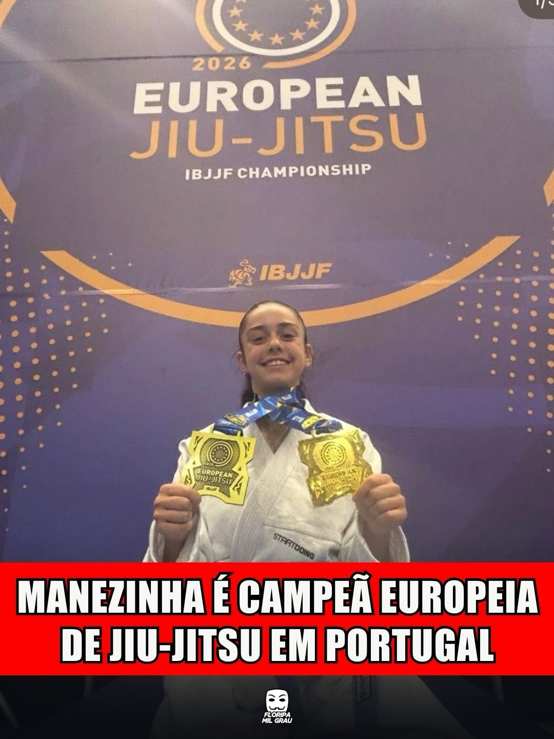 A manezinha Ester Boeing Pacheco, de 15 anos, conquistou o título do Campeonato Europeu de Jiu-Jitsu, na faixa azul juvenil, em Lisboa, nessa quinta-feira (22). É Floripa no topo do mundo, môquiridu!
