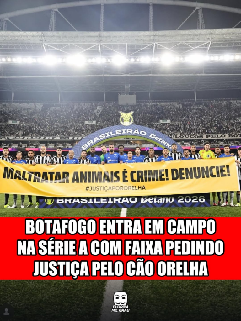 O clube carioca entrou em campo para o jogo contra o Cruzeiro, nesta quinta (29), com uma faixa pedindo Justiça Pelo Orelha, cão que foi agredido por um grupo de adolescentes suspeitos e acabou falecendo logo depois. 🤩