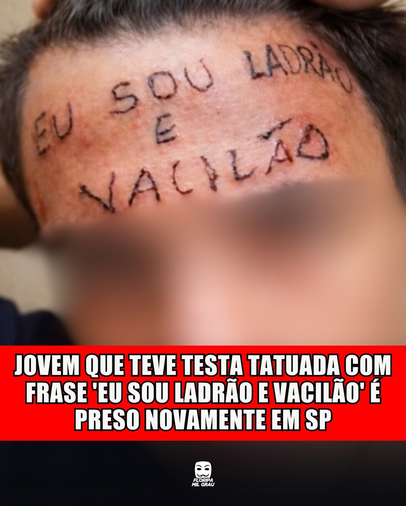 Ruan Rocha Silva, de 25 anos, conhecido por ter a testa tatuada com a frase “eu sou ladrão e vacilão”, foi preso após furtar uma Unidade Básica de Saúde em Diadema, na Grande São Paulo, nesta terça-feira (27).