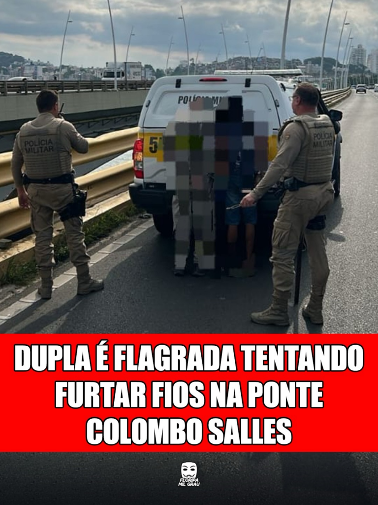 Dois jaguaras foram presos em flagrante pela Polícia Militar Rodoviária na tarde desta segunda (2), enquanto tentavam furtar fios de energia da Ponte Colombo Salles, em Floripa.