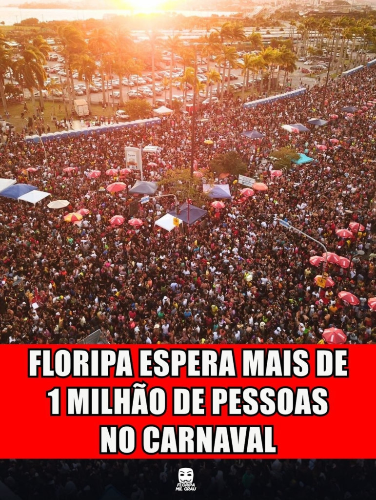 A expectativa é que Floripa receba mais de 1 milhão de pessoas ao longo da programação do Carnaval 2026. O evento terá nove arenas distribuídas pelos bairros e shows nacionais entre os dias 13 e 16 de fevereiro.