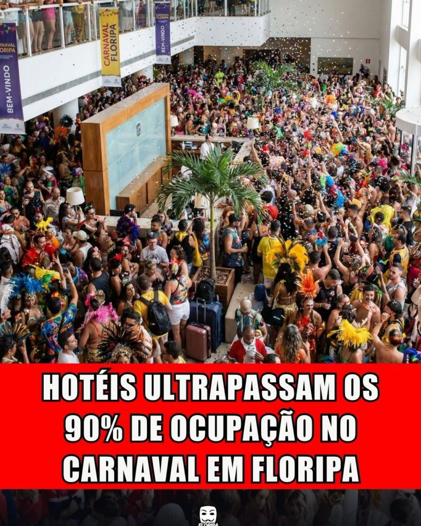 Já no Centro de Floripa, um hotel da região registrou 95,3% de ocupação. A rapaziada se esbaldou nos blocos de rua e na folia do Centro Histórico. 🎭