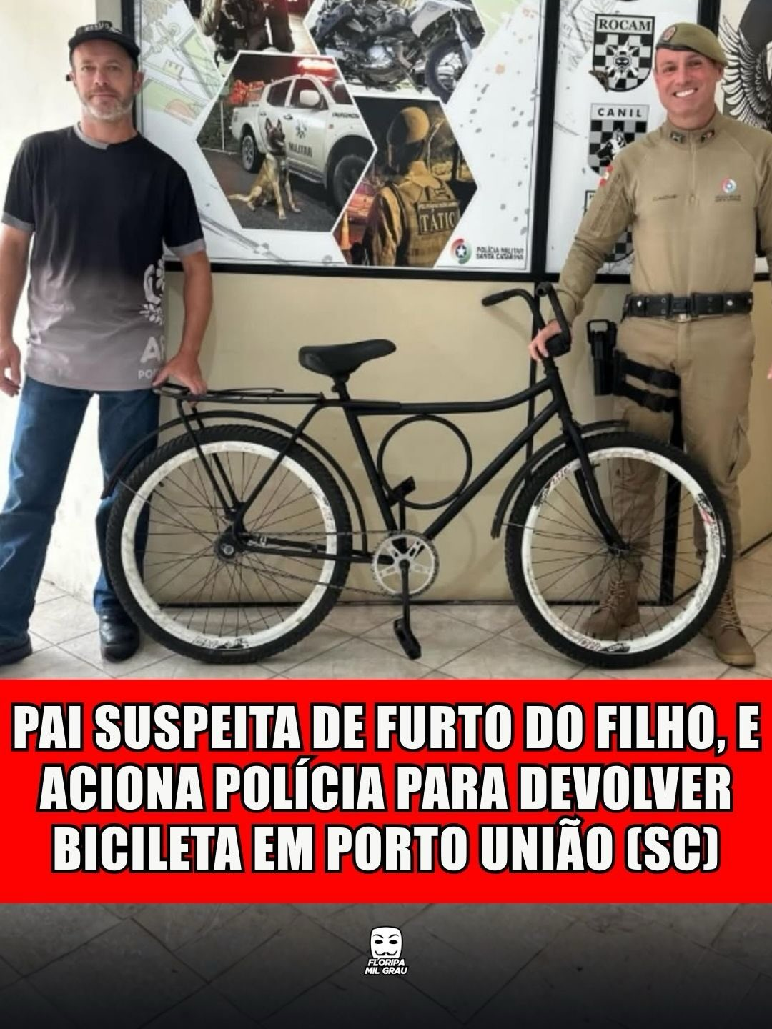 Um pai, morador de Porto União (SC), notou que seu filho chegou em casa com uma bicicleta na noite de sexta (20), mas não soube explicar a origem do item.