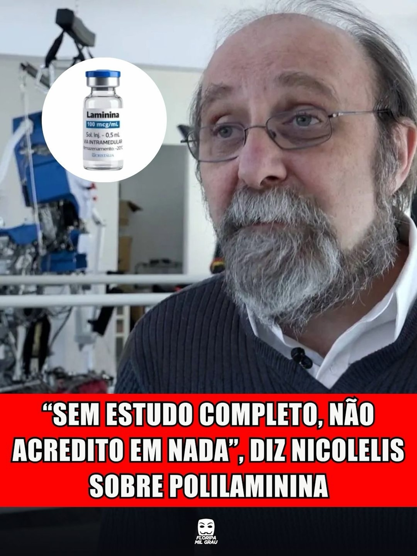 O neurocientista Miguel Nicolelis pediu cautela sobre a polilaminina, substância desenvolvida pela cientista Tatiana Sampaio, da UFRJ, que promete ajudar na recuperação de quem sofre com lesão na medula espinhal.