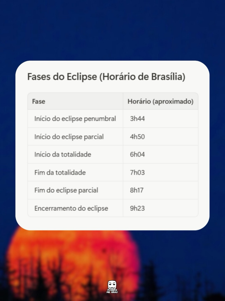 Nas regiões Norte e Centro-Oeste, há chance de observar o início da fase parcial. Já no Sul, Sudeste e Nordeste, a visualização deve se concentrar principalmente na fase penumbral, antes do nascer do Sol.