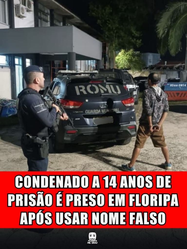 Um indivíduo condenado a 14 anos e 2 meses de prisão foi capturado pela Guarda Municipal de Floripa durante abordagem na área central. O suspeito tentou enganar os policiais ao fornecer o nome do irmão durante a qualificação. ⚖️