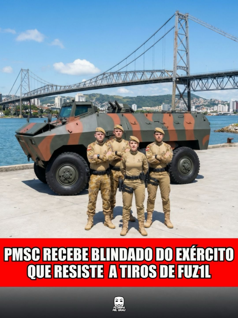 Ixpia só o novo reforço de peso da Polícia Militar de Santa Catarina! O Exército Brasileiro doou um blindado anfíbio de 11 toneladas que será usado em Joinville. 🛡️