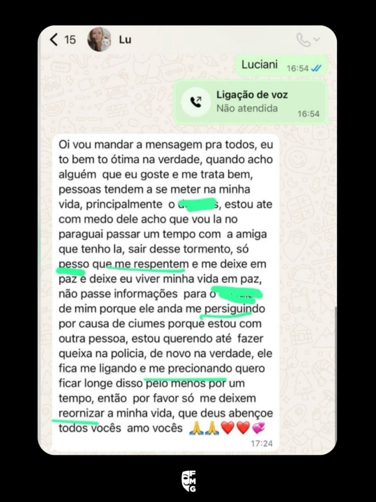 Luciani Aparecida Estivalet Freitas, 47 anos, desapareceu no dia 4 de março, em Floripa. A família desconfiou quando começou a receber mensagens no WhatsApp dela com erros ortograficos, como “pesso”, “respentem”, “precionando” e “persiguindo”.