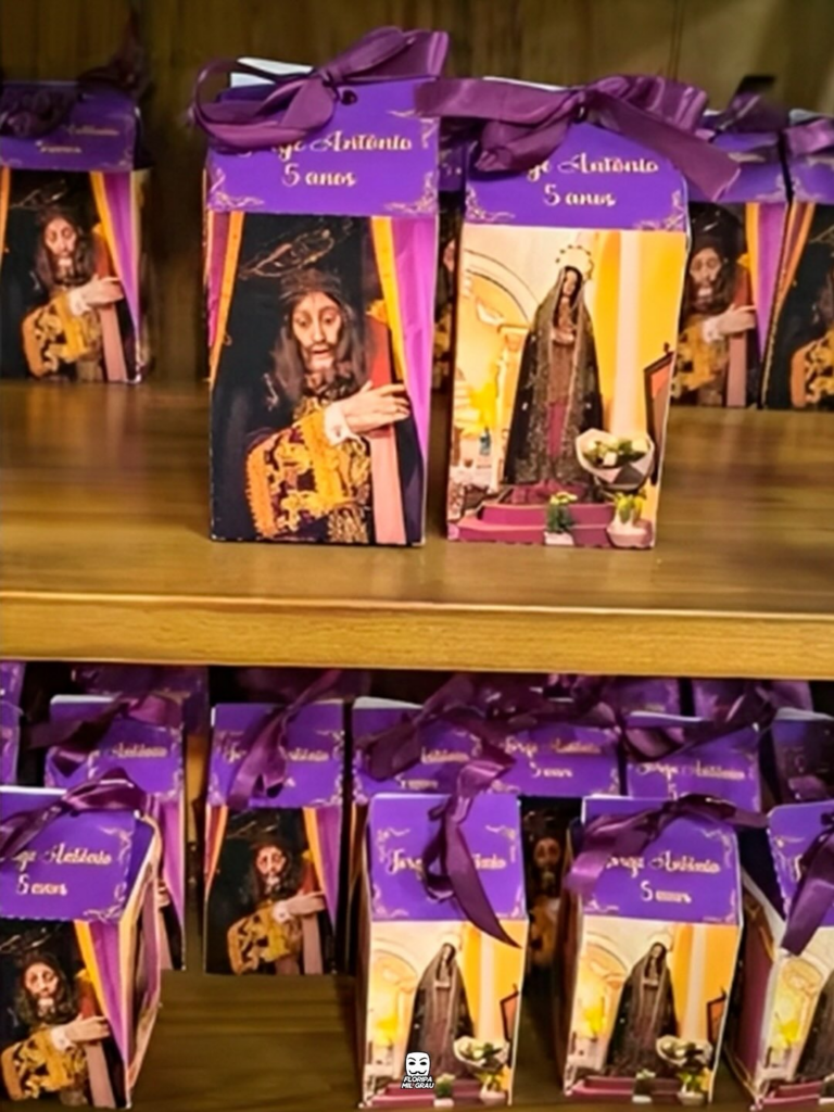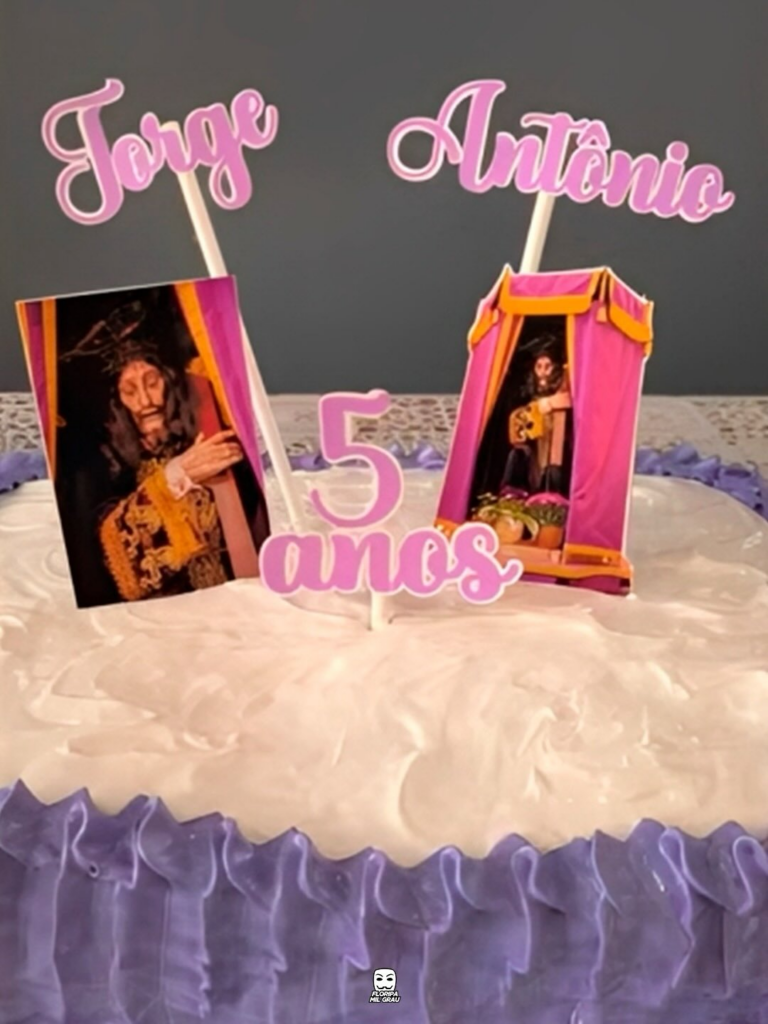 Em meio a temas de super-heróis, o pequeno Jorge Antônio, de Floripa, escolheu comemorar seus 5 anos com uma festa dedicada ao Senhor dos Passos. 🙏