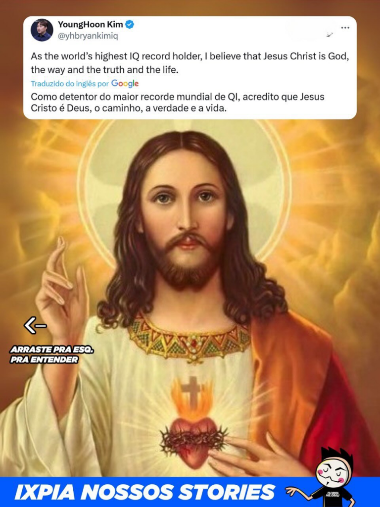 YoungHoon Kim, que tem o maior Ql já registrado no planeta (276), fez uma postagem afirmando que acredita que Jesus Cristo é Deus, o caminho, a verdade e a vida.