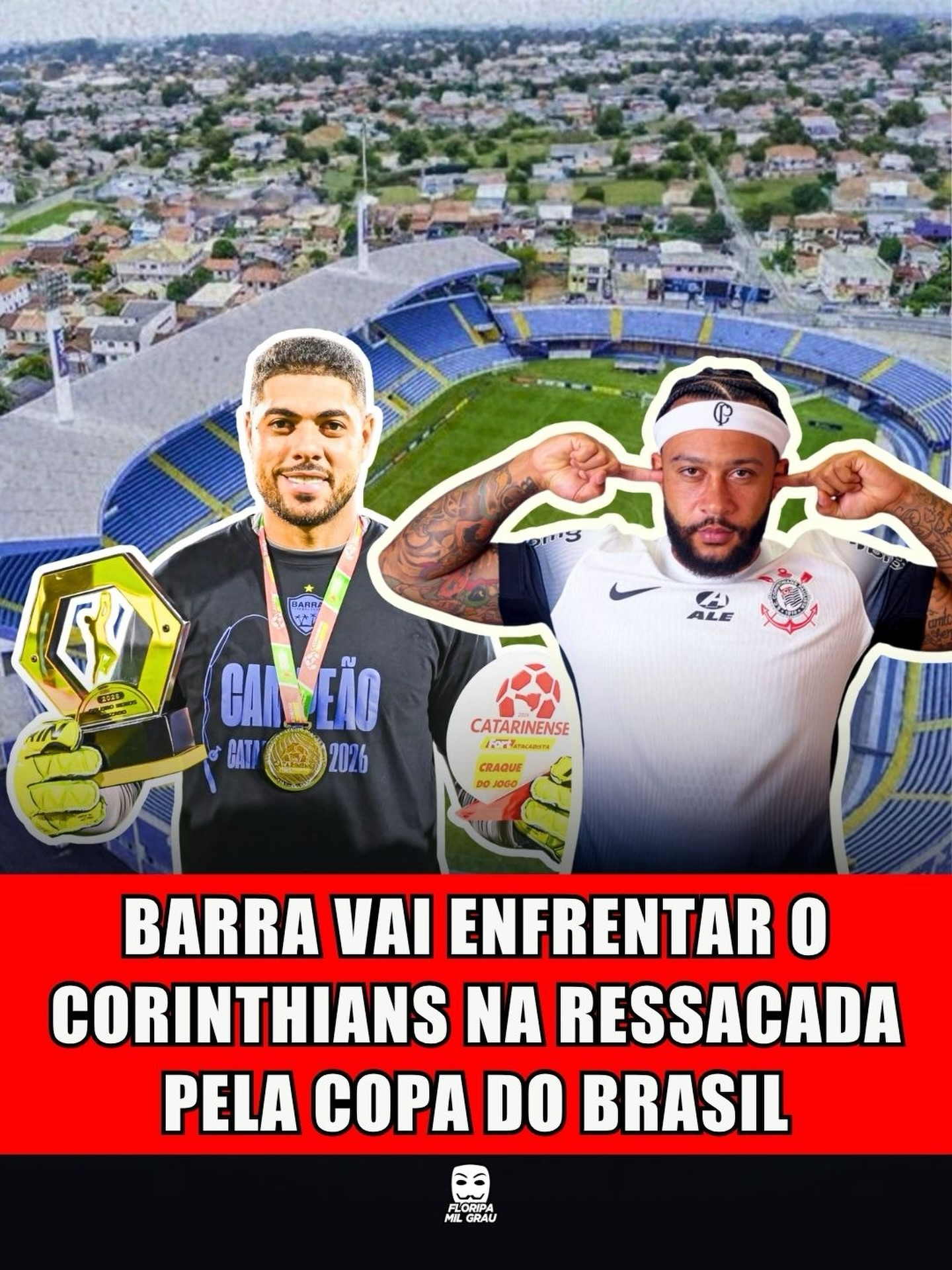 Confirmado! O Barra FC vai mandar o jogo contra o Corinthians na Ressacada, estádio do Avaí. A informação foi confirmada pelo jornalista Isabella Corrêa, da ESPN.
