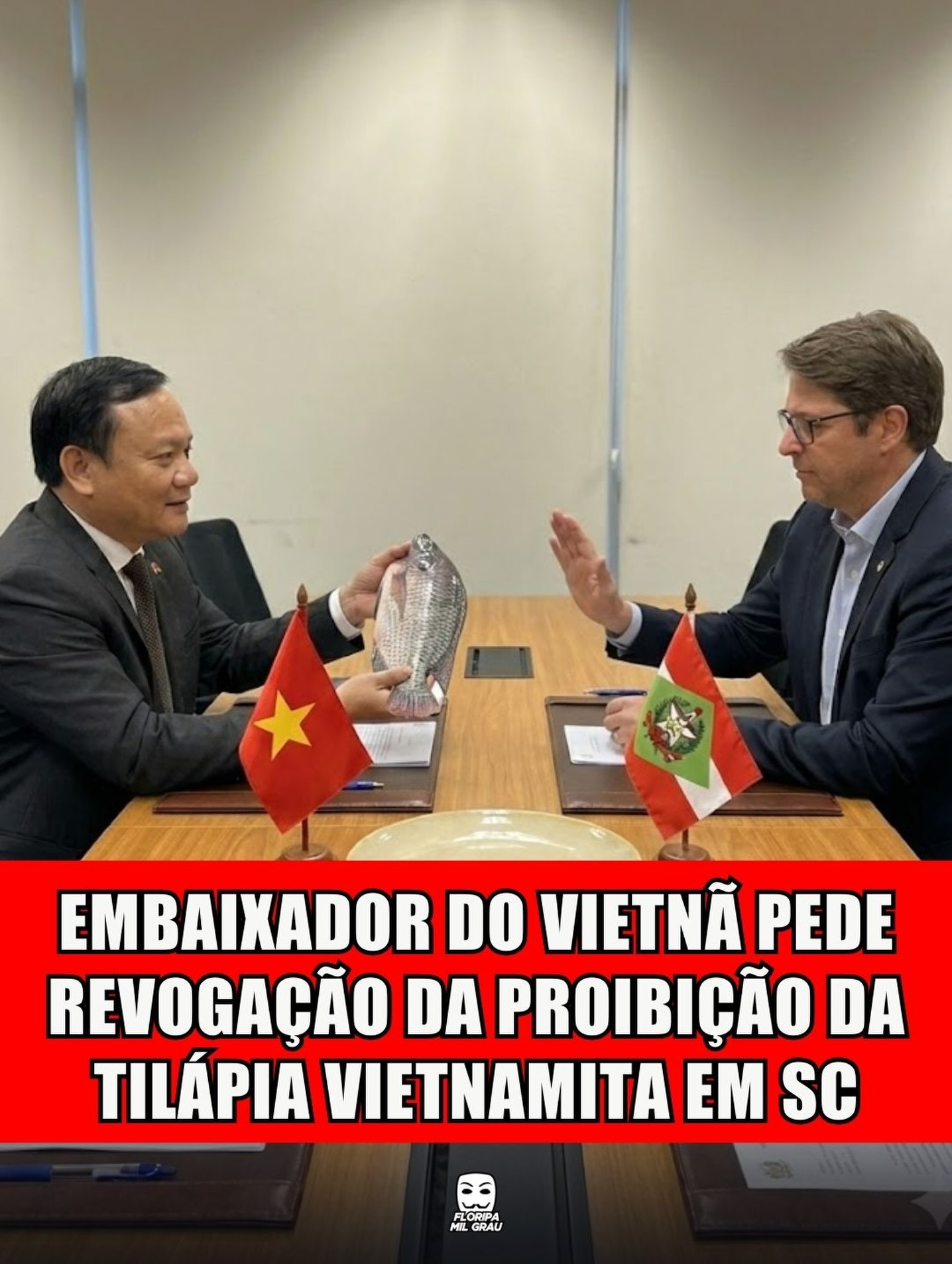 O embaixador do Vietnã no Brasil, Bui Van Nghi, entrou em contato com o Governo de Santa Catarina pedindo pra revogar a portaria que barra a venda de tilápia vietnamita…