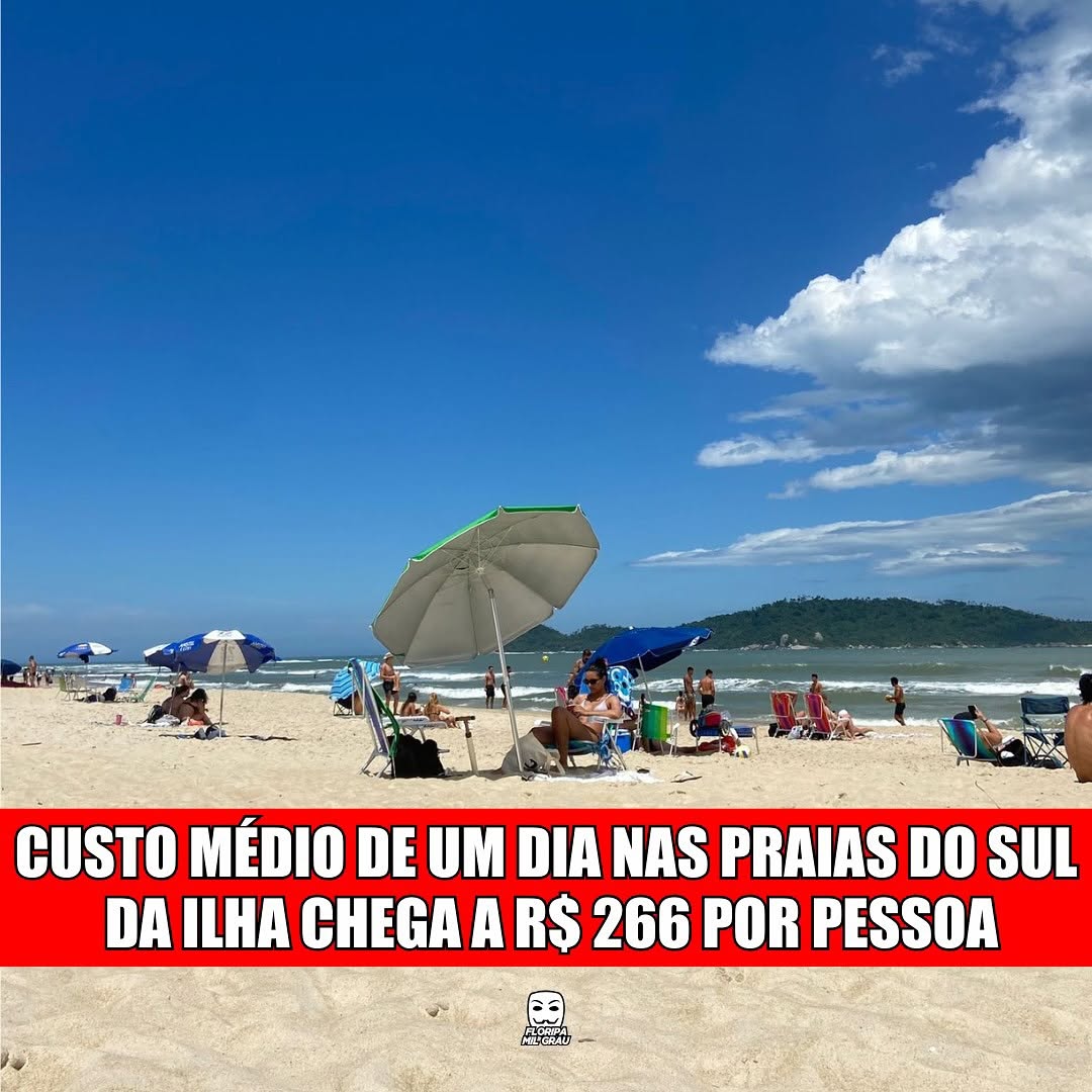 Os dados comparam preços de alimentos, bebidas, estacionamento e aluguel de itens de praia.