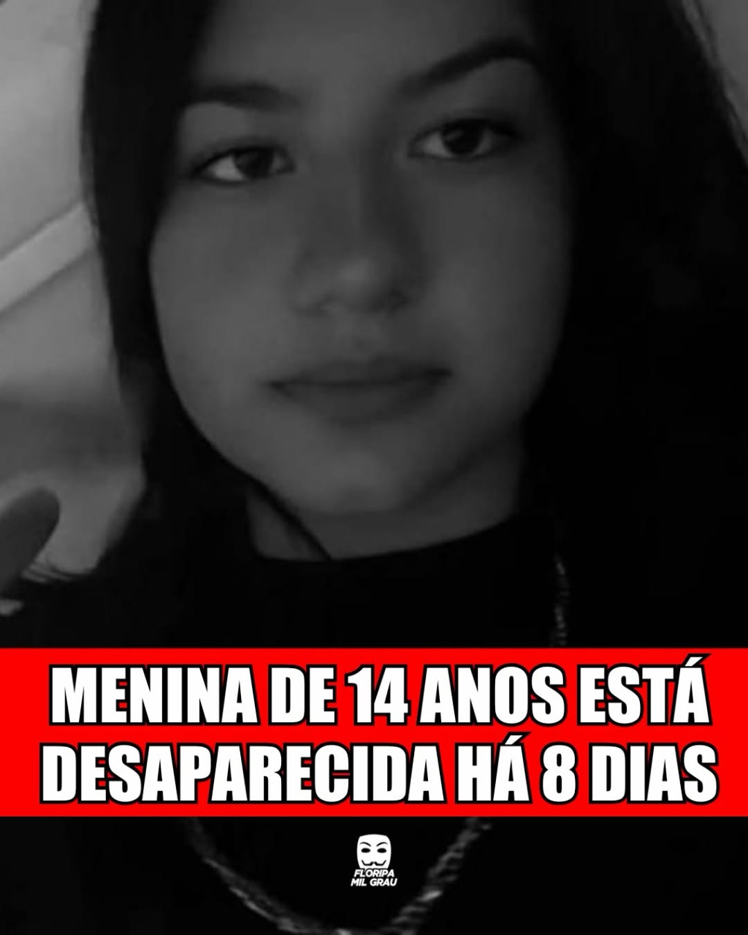 Menina de 14 anos está desaparecida há 8 dias