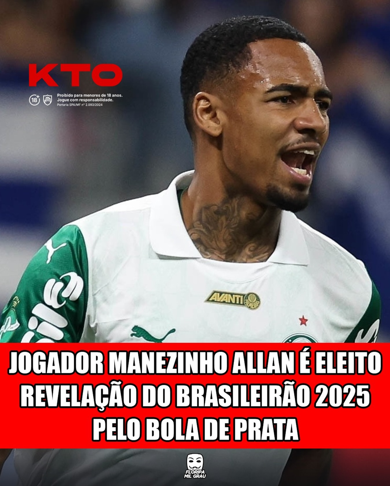JOGADOR MANEZINHO ALLAN É ELEITO REVELAÇÃO DO BRASILEIRÃO 2025 PELO BOLA DE PRATA