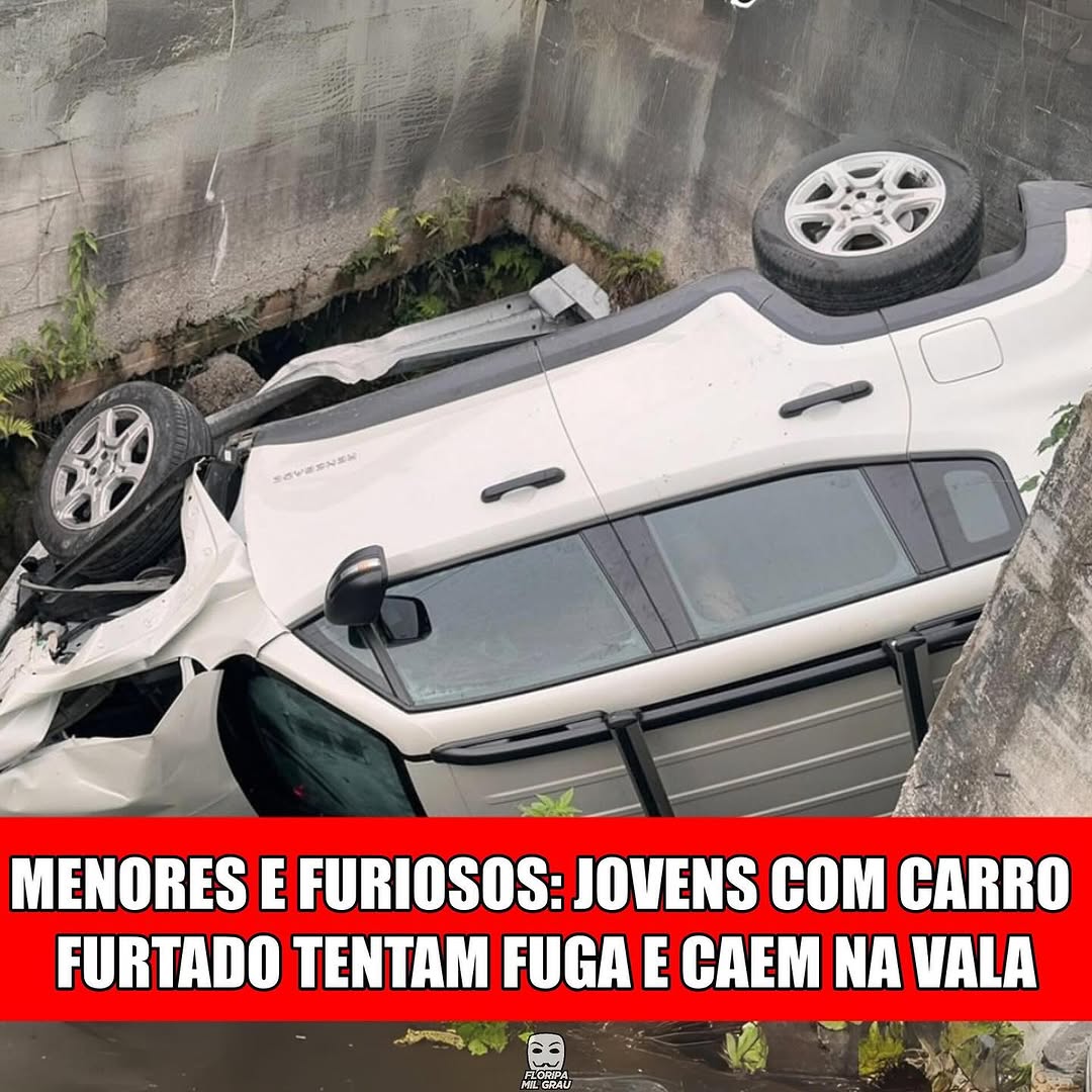 Menores e Furiosos: Jovens com carro furtado tentam fuga e caem na vala