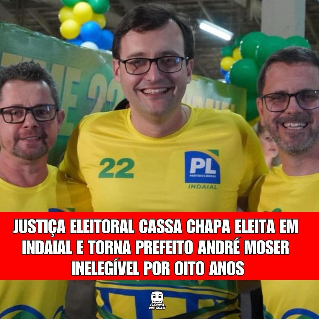 Justiça Eleitoral caça chapa eleita em Indaial e torna prefeito André Moser inelegível por oito anos