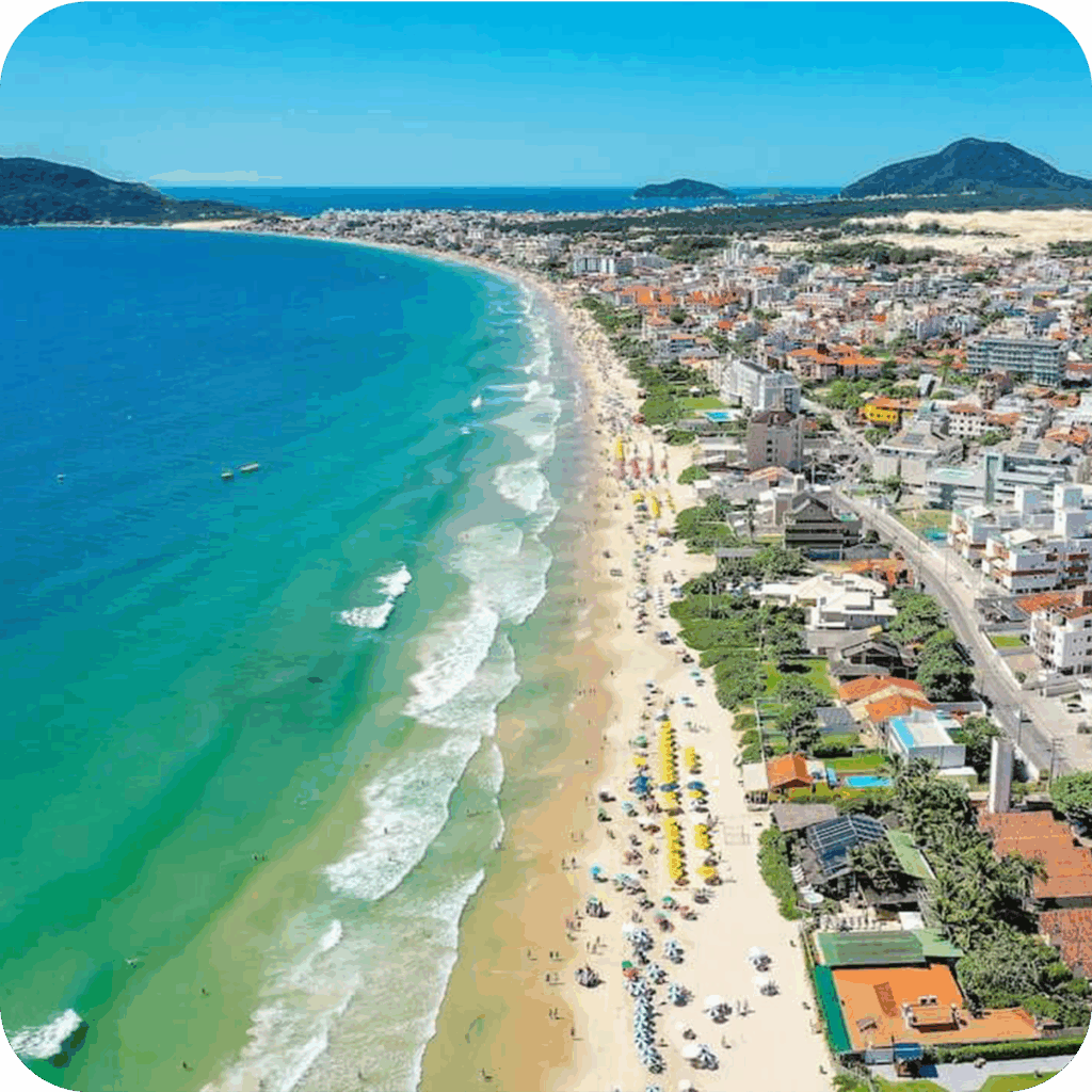 Leste 🌴 – O coração jovem e alternativo de Floripa. Praias como Joaquina, Mole e Barra da Lagoa são ícones do surfe, da vida boêmia e do contato com a natureza em estado puro.